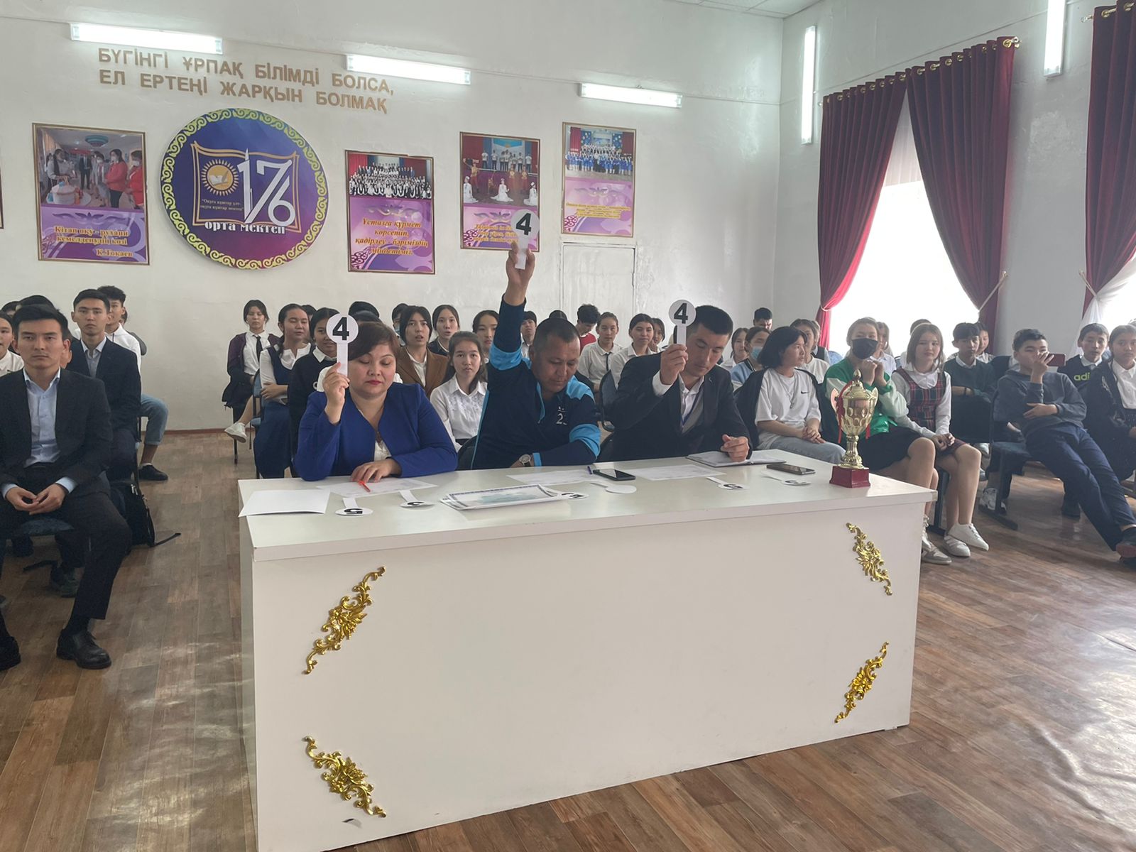 ?№176 орта мектебінде 4 мамыр күні "7 мамыр-Отан қорғаушылар күніне" орай "Көңілді жігіттер" КТА ойыны өткізілді. Оқушылар ойында әдемі әзілдерімен, тапқырлықтарымен, әртістік қабілеттерімен жаңа қырларынан көрінді. Шабытты шәкірттер арасында ерекше көзге түскен командалар мен ойыншылар марапатталып, кубок иегерлері де анықталды.